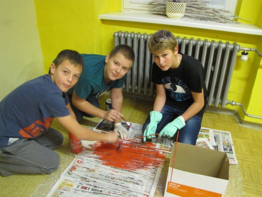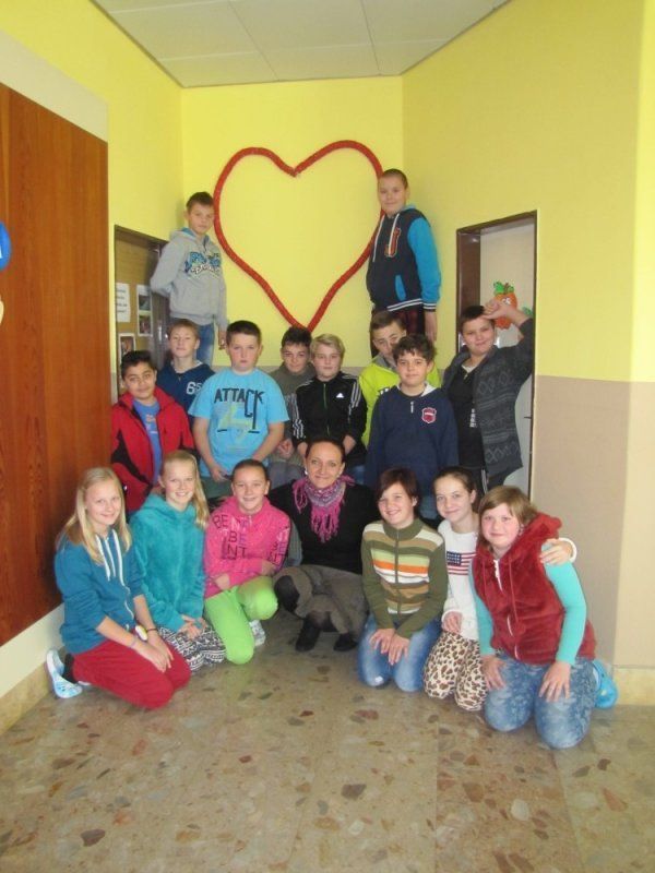 Paní učitelka Dita Štolfová nám poslala fotografie svých svěřenců ze 6.B Základní školy Vrdy, jak vyráběli obří srdce pro maminky.