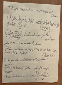 Často dětem říkám, že nejdůležitější v životě není mít samé jedničky, být bohatý a úspěšný, ale především mít dobré srdce. A nebát se to srdce nabídnout a ukázat těm, kteří ho potřebují – vidět a vnímat. Umět podat pomocnou ruku, potěšit, povzbudit a svým chováním jít vzorem…