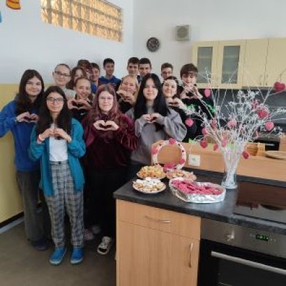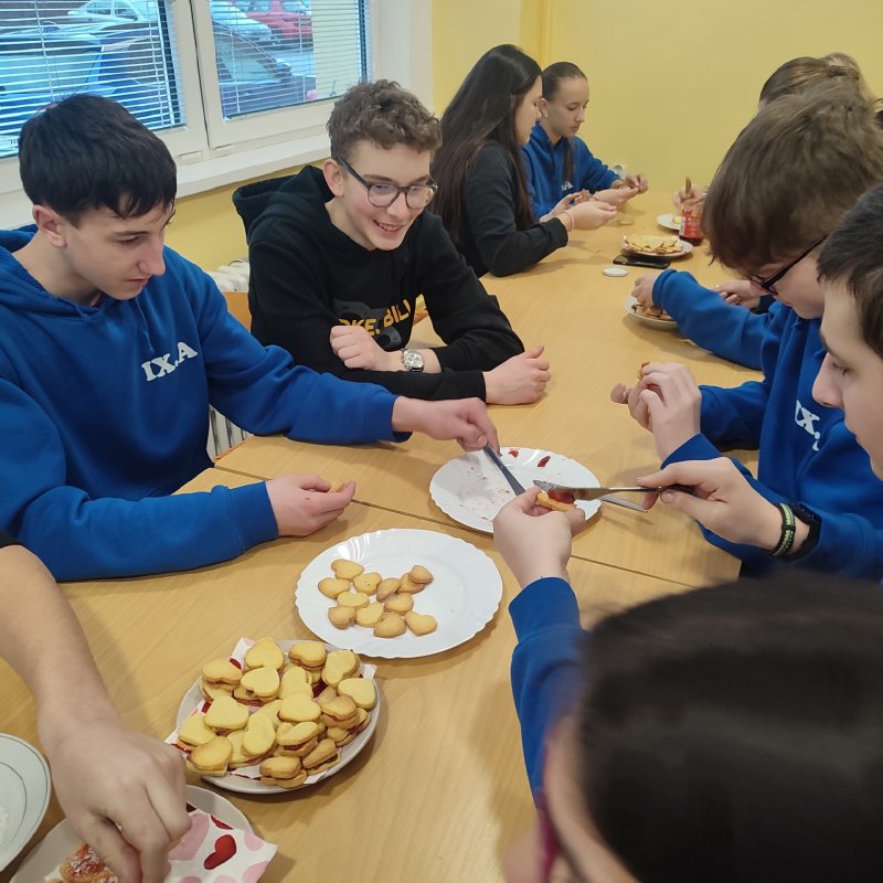 Kolektivy žáků napříč všemi ročníky vyráběly rozmanitá srdce pro Hanku, z nichž jsme utvořili výstavu ve školní jídelně.